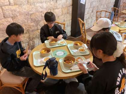 ハンバーグやオムライスなど、それぞれが自分の好きなものを選んで美味しそうに食べてます。