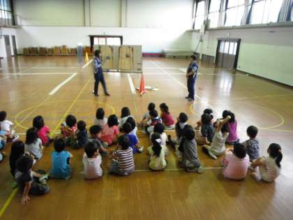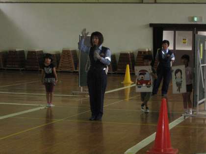 おまわりさんから,みちやこうさてんのあるきかたや,おうだんほどうのわたりかたをおしえてもらいました。