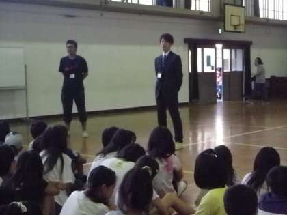 そのなかで,今週でお別れになるALTの先生にお話をしていただいたり,今日からお世話になる総合育成支援員の先生の紹介などがありました。