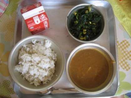 ジョン先生から,今日の給食に登場した「にんじん」や「とうもろこし」など野菜を英語でなんと言うのかを教えていただきました。