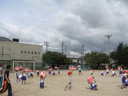 うんどうじょうでのれんしゅうもがんばっています。