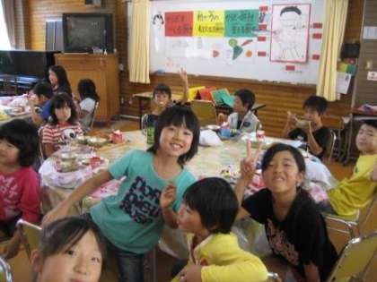 給食室では,衛生管理に注意しながら一個一個確認しながら