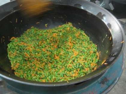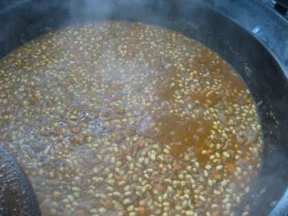 今日は,じっくりコトコト朝一番から軟らかく煮込んだ豆を使用した