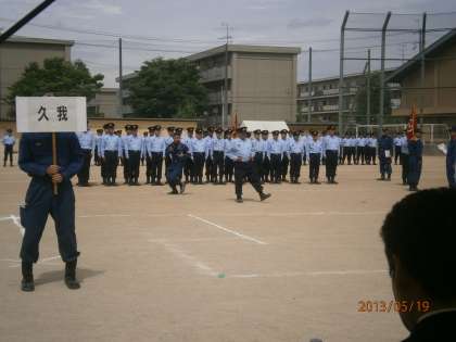 5月19日(日)午前9時より京都市立藤森中学校を会場にして「伏見消防団総合査閲」が行われました。伏見区内の21の消防分団が一堂に集い,各地域の消防分団の団結力や通常訓練の様子を地域の皆様方に披露し,消防署の査閲を受けるものです。わが「久我分団」も多数の団員で参加し,日頃の訓練の成果を存分に発揮されました。学校行事である避難訓練など様々な場面でお世話になります。今後ともよろしくお願いいたします。