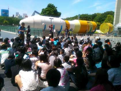 10時ちょうど,予定通り「名古屋市科学館」に着きました。午前中は,ここで活動します。向島二の丸小学校も修学旅行に来ていました。