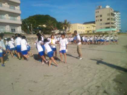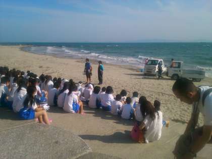 山海海岸で「地引き網体験」をしました。青い空と海。どんな魚がとれるのか。