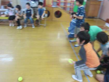 6月2日に日曜参観に向けて,大空学級は「ボール入れゲーム」を練習しました。ボールを入れるチーム,得点を計算して発表するチームにわかれ交互にゲームを行いました。ボールを入れるのに転がし方を考えていた子,時間がかかってもがんばって計算していた子,練習の時からみんな真剣な表情でボールを転がし,係の活動を行っていました。