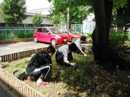 今日は,午前9時ごろから,管理用務員さんと一緒に男女2名の生徒が,草むしりの作業を行ってくれました。学校には色々な職種があり,それぞれの職種の人たちが連携し合って学校が動いていることを知って貰ういい機会だと思います。