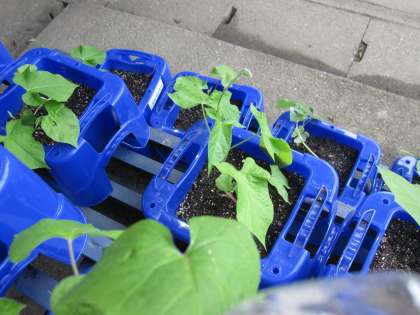 5月のはじめに種まきをしたアサガオがどんどん成長しています。「うさぎの耳みたいなはっぱが出たよ。」「こんどは,ロケットみたいなはっぱも出てきたよ。」「ロケットのはっぱには毛がはえて,もこもこしているよ。」など,子どもたちは楽しんで観察しています。毎日の水やりもかかさずして,大きくなっていくのを楽しみにしています。