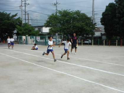夏休みになりました。6年生は希望者が集まり,8:00から陸上の練習を始めています。初日は35名参加しました。暑い中,一生懸命走る姿がすばらしいです。陸上の記録会に参加する人,体力をつけたい人,理由はいろいろですが,夏休みの間,続けてがんばってほしいと思います。