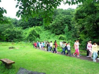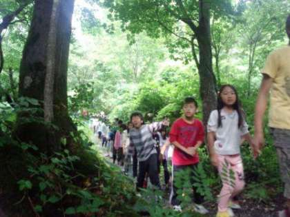 午後から少しずつ天気も回復してきたので,夕方からは「山歩き(山の散歩)」をしました。高原だけに,非常に珍しい植物もたくさん生えていました。子どもたちは,小川の水の冷たさに驚いていました。
