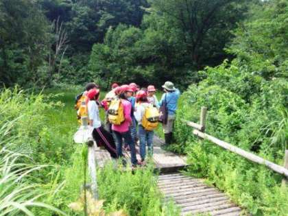 自然保護センターで観察をしている様子です。空気が澄んでいて,新鮮で,とても気持ちの良い環境です。とても緑が鮮やかです。