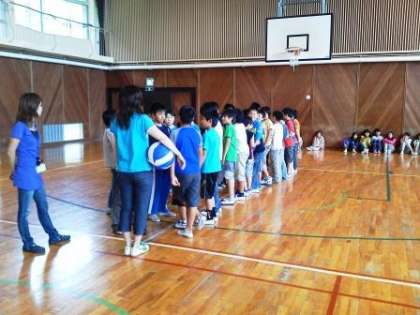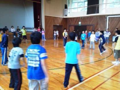 本日は,朝からとても良い天気に恵まれましたが,前日の激しく降った雨の影響で,「登山道がぬかるんでいて滑りやすくて大変危険である」との判断で,残念ながら今日の「登山」は中止になりました。その代わりに,奥越自然の家にある体育館でドッチボール大会を行うことになりました。クラス対抗戦で,応援にも熱がこもっていました。写真はその時の様子です。
