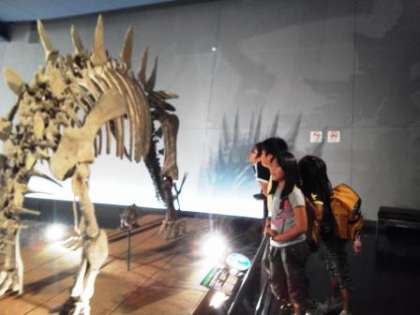 退所式も無事に終えて,奥越高原自然の家を出発しました。目指すは,福井県立恐竜博物館です。この博物館には,本物の恐竜の骨はもちろん,巨大な動く恐竜模型など,恐竜に関するたくさんの物が展示されています。子どもたちは,夢中になって館内を見学していました。