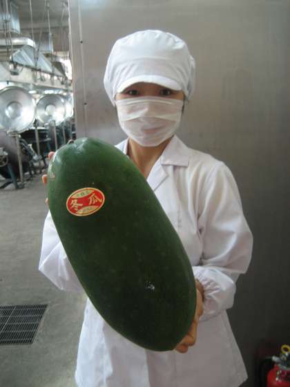 今日は,生まれたての赤ちゃんほどの大きさの冬瓜が納入されました。