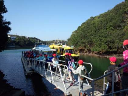 マリンランドへ遊覧船に乗っていきます。
