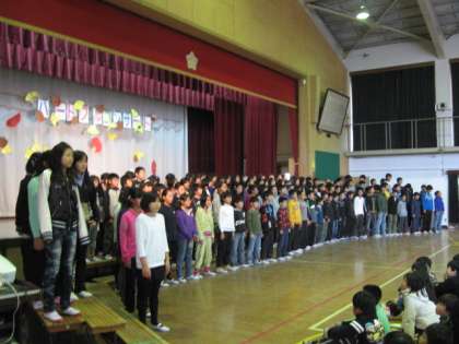写真右は,6年生の発表の様子です。6年生にとっては最後のハートフルコンサート,子どもたちの表情は大変引き締まったものでした。最高学年として,素晴らしい態度,そして歌声を他学年に示すことができたと思います。継続的に続けてきたボイストレーニング,体力作りの成果を見ることができました。金曜日には,たてわり活動もあります。下級生を導くリーダーとしての活動を期待しています。
