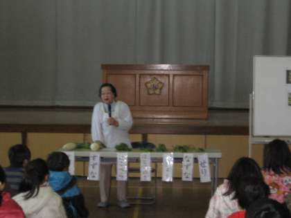 はじめに,地域女性会を代表して芳山様より七草がゆの概要や使われている食材についてお話をしていただきました。