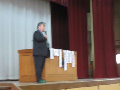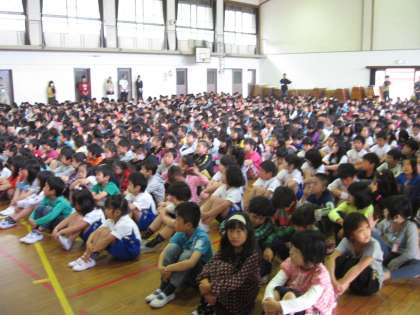 今月は憲法月間ということで,朝会を利用し,学校長より日本国憲法について話を行いました。