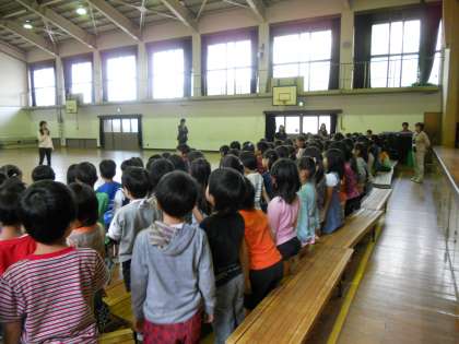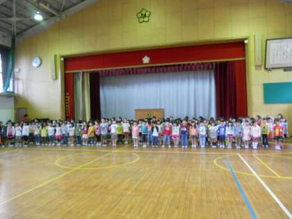 今日は1年生のお返しの出し物と入退場の練習しました。