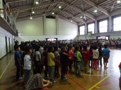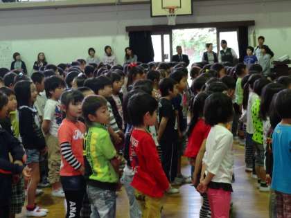 去年は迎えてもらう立場でしたが,今日は初めて迎える立場での発表ということもあり,子どもたちは緊張した面持ちでした。