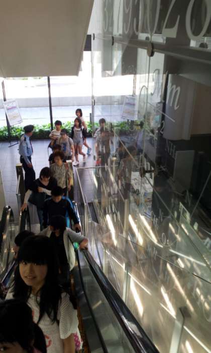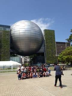 科学館の前で記念写真を撮ったあとは,エレベーターでプラネタリウムへ移動しました。どんな星空を見ることができるのでしょう。
