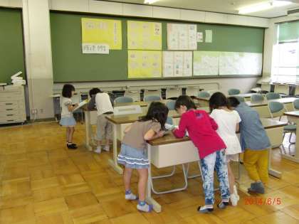 2年生に連れて行ってもらった時とは違い,今度は自分たちがよく見て,見つけたものをメモしていきました。