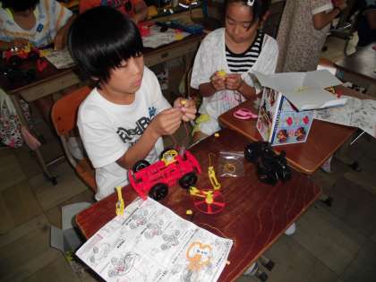 電池のはたらきの学習が終わり,待ちに待った車作りをしました。