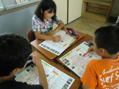 いよいよ「奥越青少年自然の家」での長期宿泊学習まで,あと一週間となりました。今週は,学年集会でキャンプファイヤーの練習をしたり,班で大野市ウォークラリーのまわり方を話し合ったりしました。
