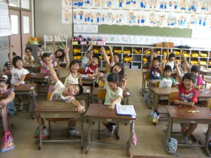 先生が「夏休みの宿題を配るよ。」というと,子どもたちは大喜びでした。