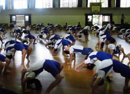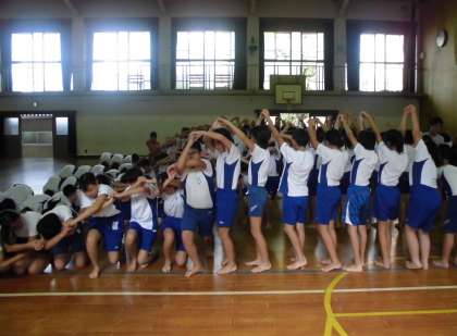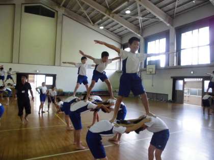 今では,もう少し難しい3人技や6人技,クラス全員でする「ウエーブ」などがんばっています。