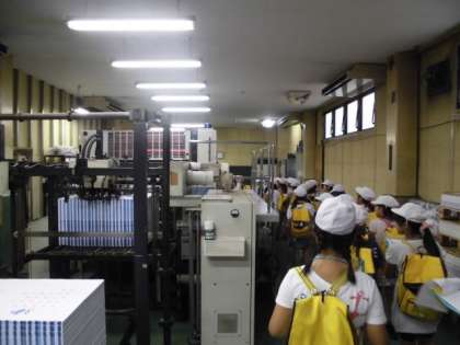 それぞれの工程の機械に興味津々のようでした。