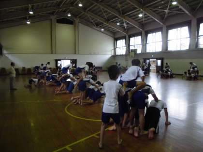 組体操の練習風景