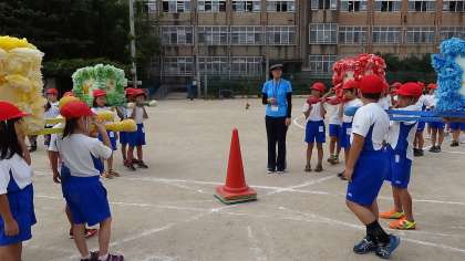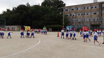 今日はおみこしわっしょい!の隊形移動の練習をしました。