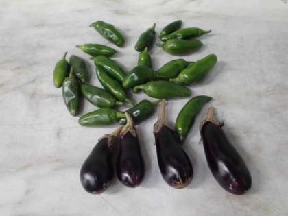 今日,「子どもピーマン」(苦くないピーマン)と「なす」が採れました。