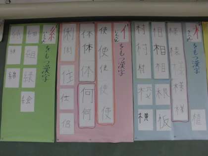 そして今日は,「きへん」「にんべん」「いとへん」をもつ漢字を集め