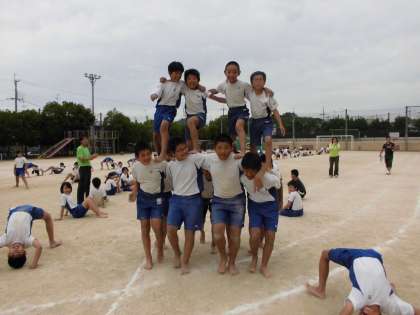 何度もチャレンジするけれどうまくいかないとグループの中で嫌な雰囲気が漂う時も。でも,それも組体操では大切な経験です。そこからどうやって成功させるのか考えたり,協力したりすることが成長につながると考えています。