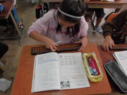 算数で「そろばん」を学習しました。3年生の時にもやっていたので,楽しく取り組むことができていまいた。