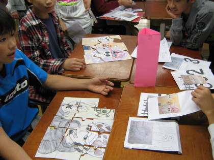 自分たちで手作りをしたジグソーパズルを低学年の人たちが楽しんで遊んでいる姿を見てとても満足そうにしていました。