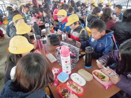 お家の方が作ってくださったおいしいお弁当を,喜んで食べました。