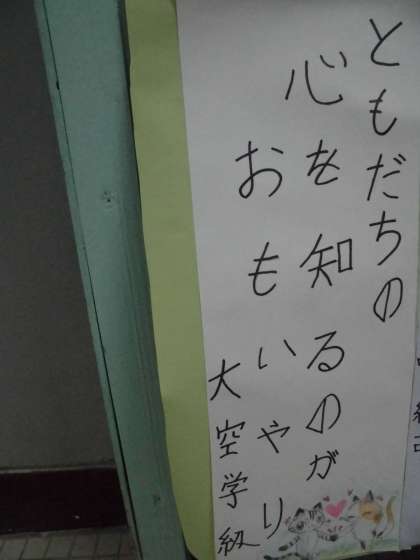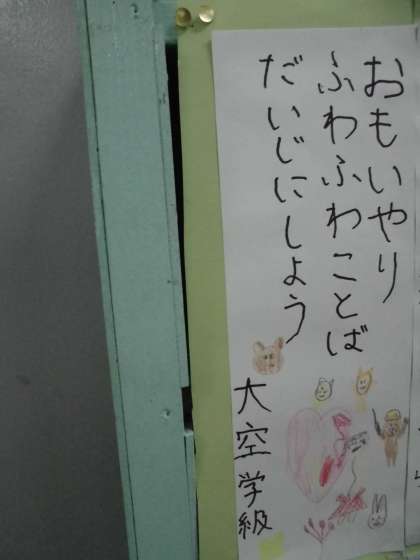 大空学級は『おもいやり ふわふわことば だいじにしよう』と『ともだちの 心を知るのが おもいやり』の2つを出しました。