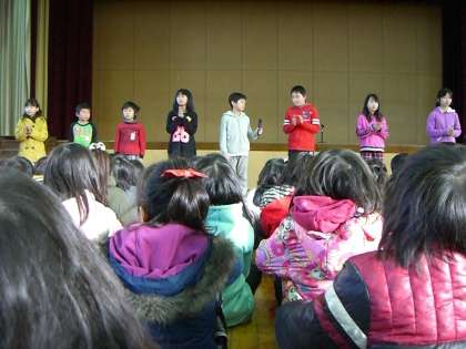 そして,9日(月)の人権集会では学年の代表として,2人の標語を全校に発表しました。堂々と標語を言うことができました。