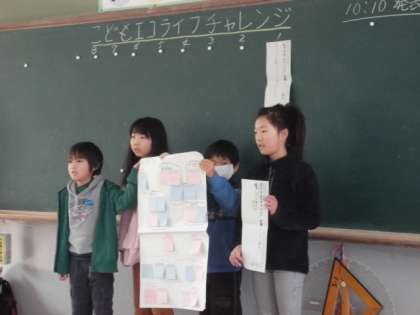 2月10日に,気候ネットワークの方々に来ていただき,エコライフチャレンジの学習を行いました。よりエコな生活をおくるために自分たちが実践できていることや,今後取り組みたいことなどをグループで話し合い,発表しました。