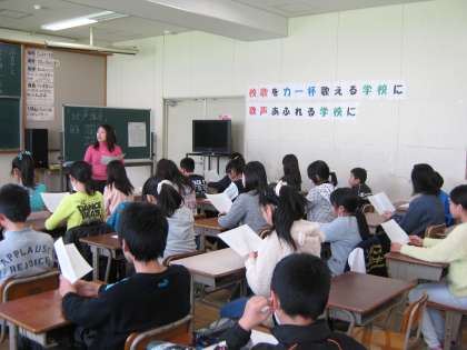 はじめは緊張した面持ちでしたが,中学校の先生や先輩達をみて,笑顔も見られるようになってきました。
