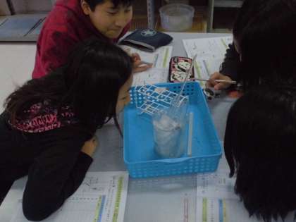 今日は水を冷やしていくとどうなるのかを,観察しています。