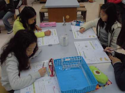 温度の変化や,水の様子の変化をしっかりと見ています。