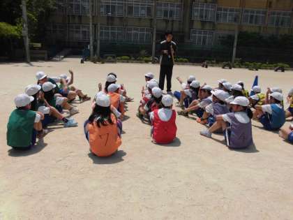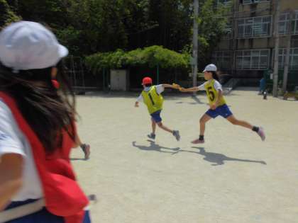 4年生は体育の授業でリレーをしています。リレーでは,チームごとの練習になりますが,その中で,特にバトンパスを中心に練習しています。