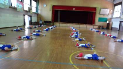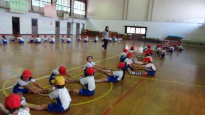 体で1から10までの数字を表現したり,2人組になって体を伸ばしたりしました。授業が終わるころには,体だけではなく心もほぐれ,子どもたちの笑顔がたくさんあふれていました。