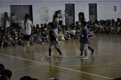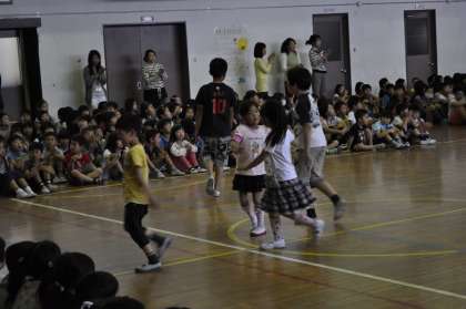 会のはじめは,6年生と1年生が仲良く手をつないで入場をしました。