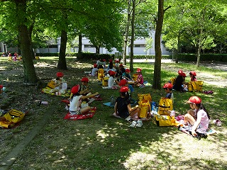 お弁当の後は,芝生が気持ち良い広場であそびました。